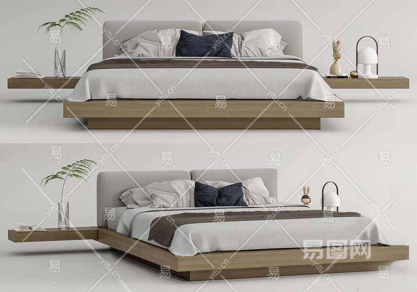 现代双人床3D模型下载