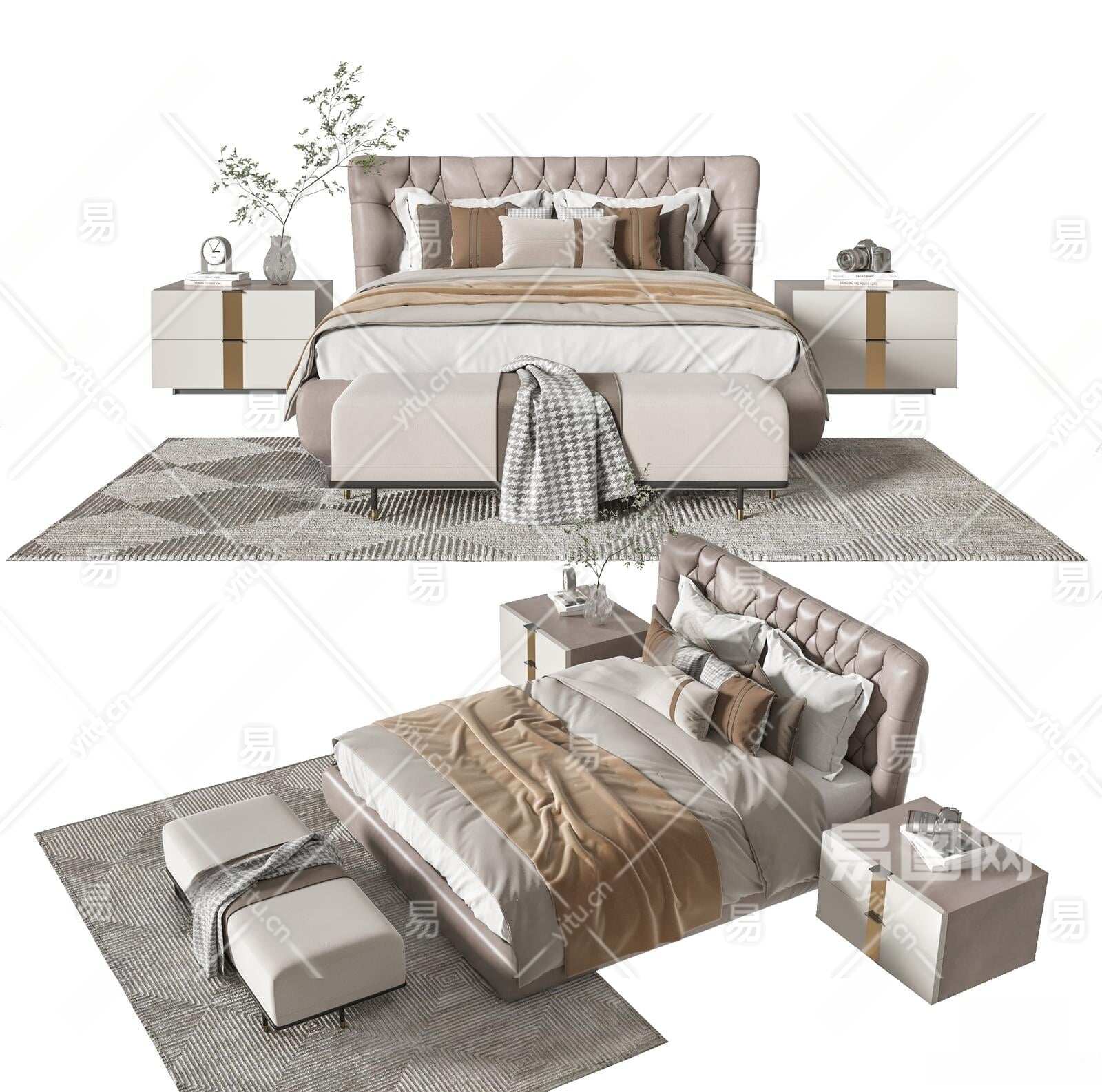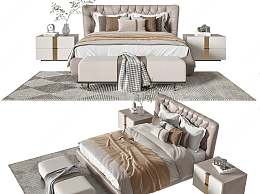 现代双人床3D模型下载