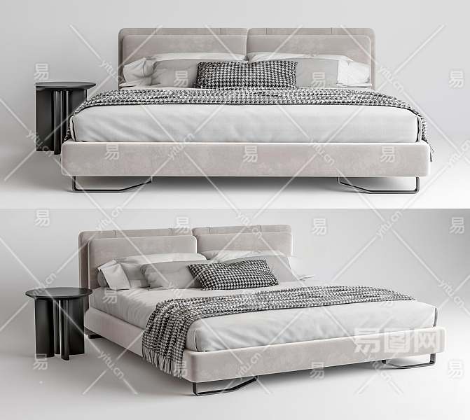 现代双人床3D模型下载