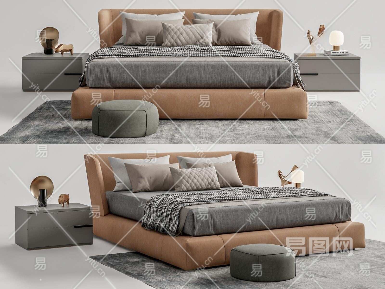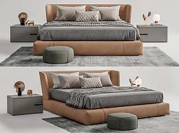 现代双人床3D模型下载