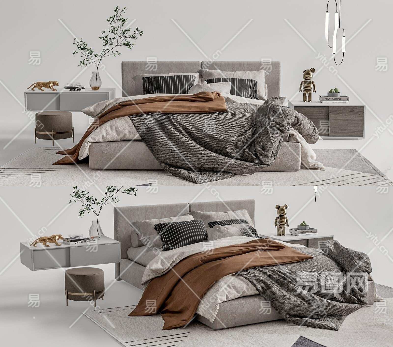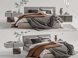现代双人床3D模型下载