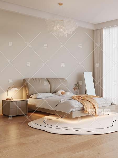 北欧双人床3D模型下载