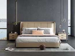 现代双人床3D模型下载