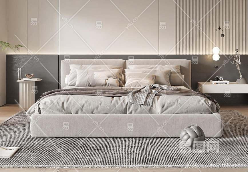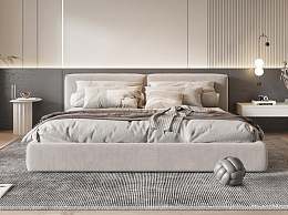 现代双人床3D模型下载