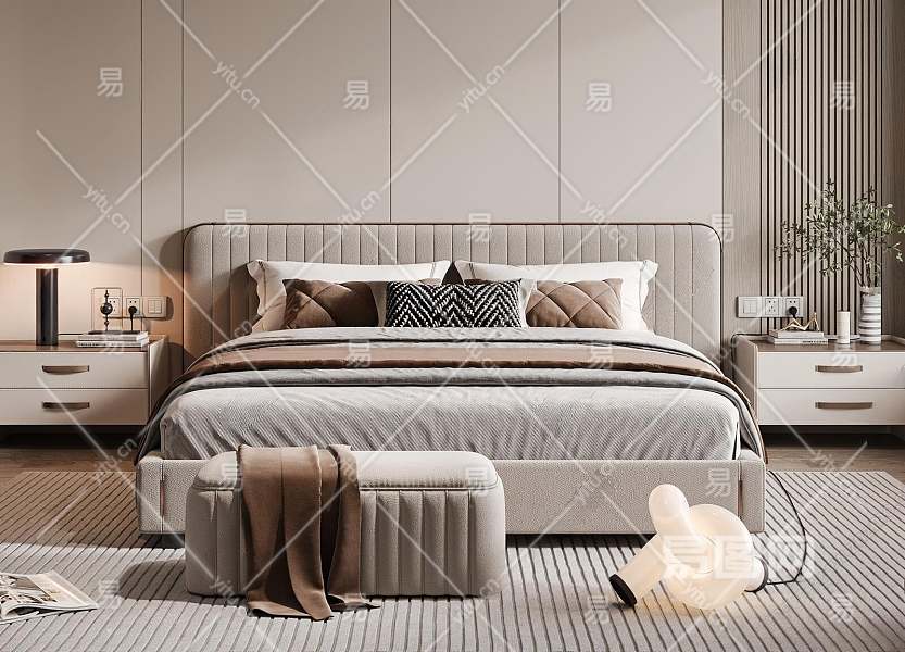 现代双人床3D模型下载