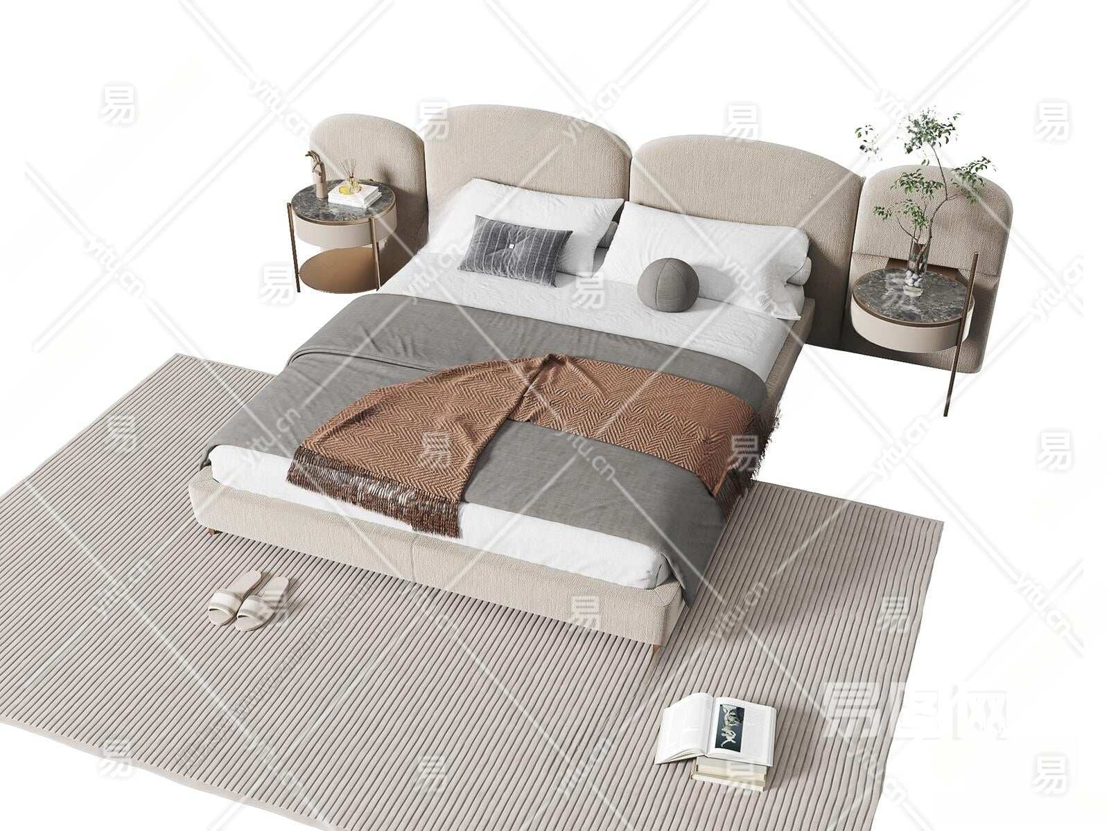现代床3D模型下载