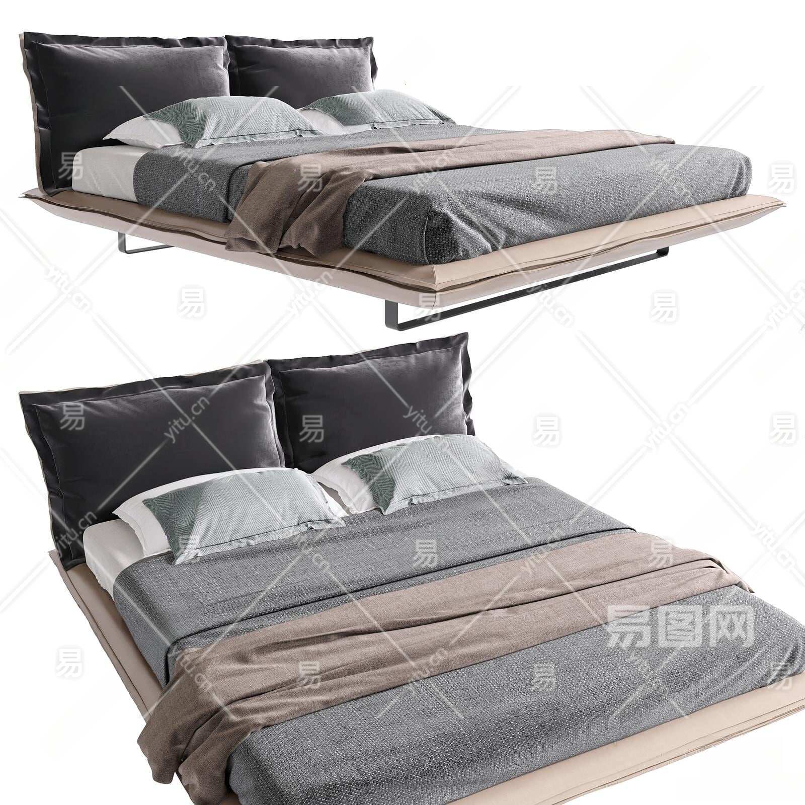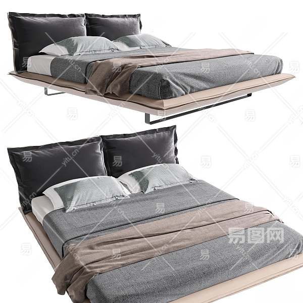 现代双人床3D模型下载