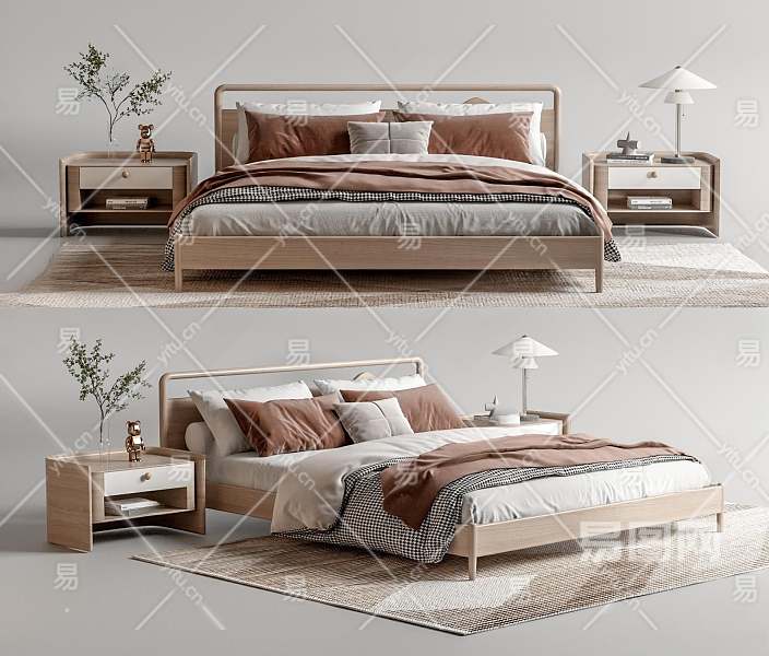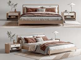 北欧双人床3D模型下载