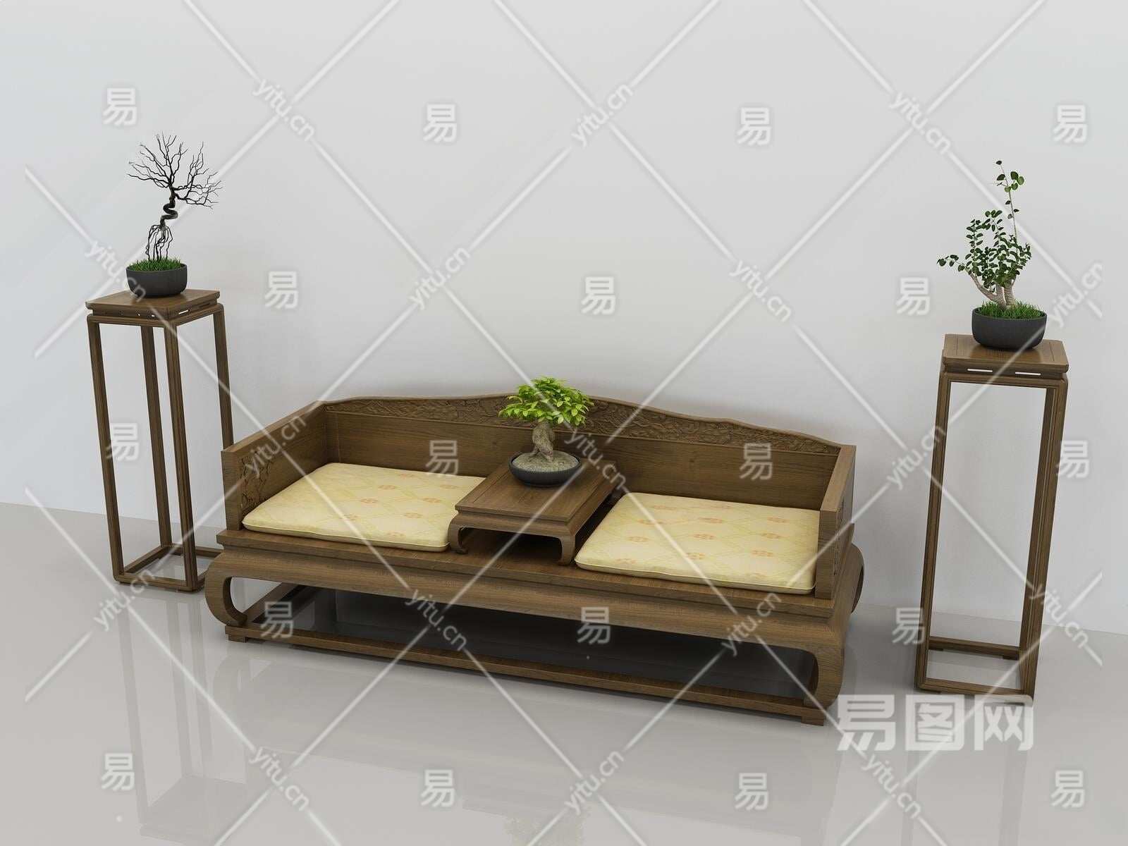 新中式罗汉床3D模型下载