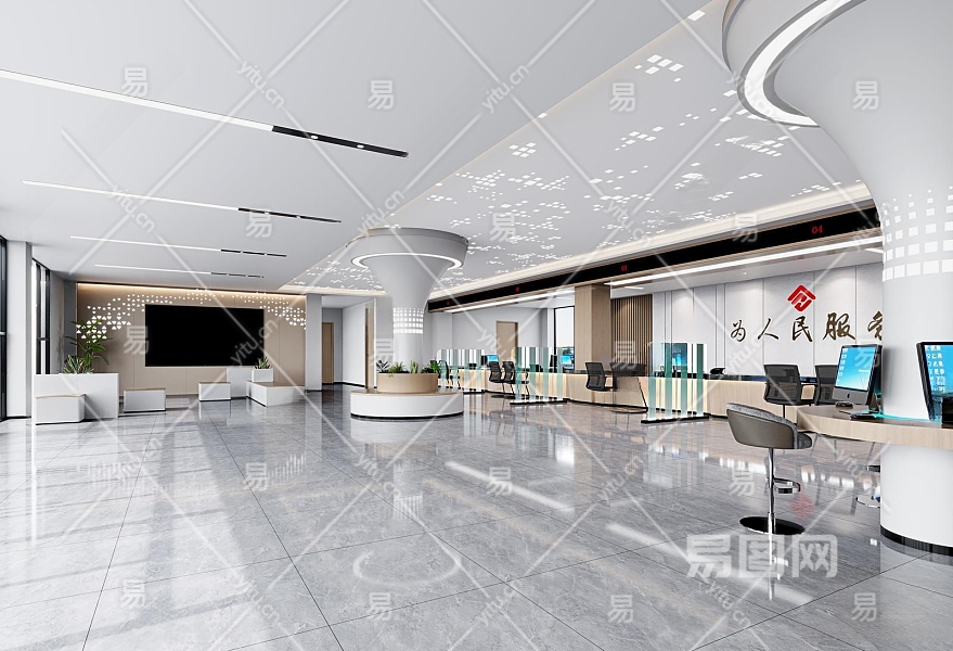 现代银行大堂3D模型下载
