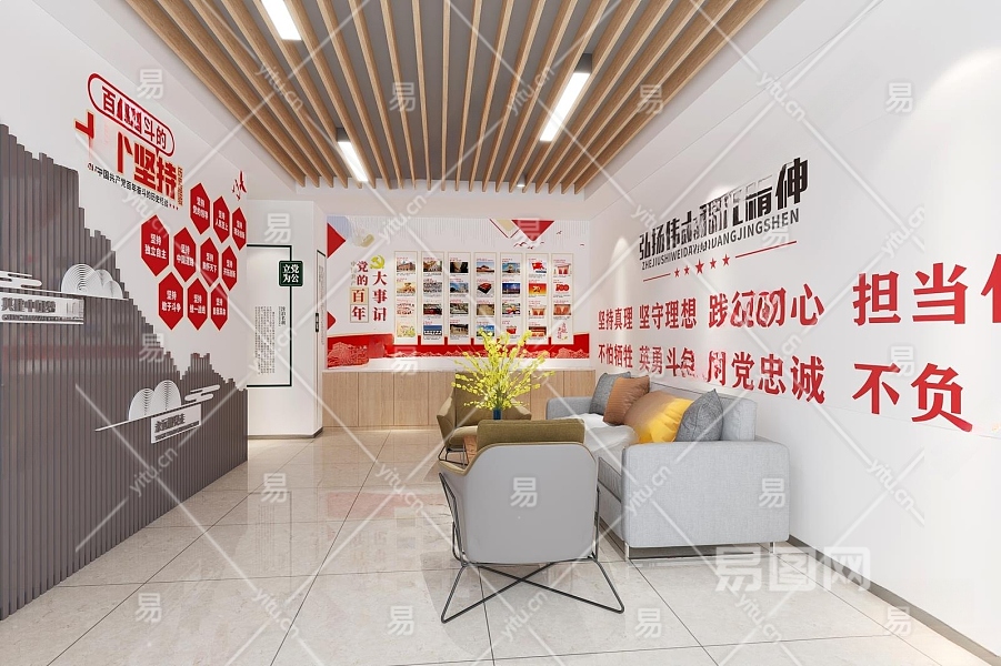 现代党建活动室3D模型下载
