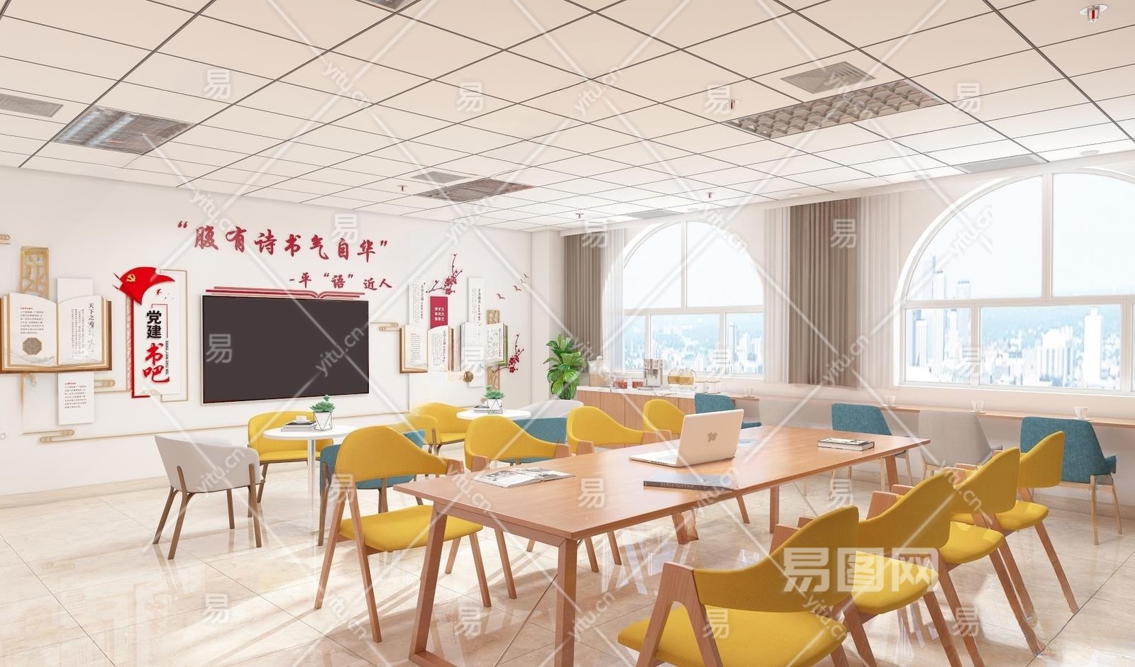 现代党建活动室3D模型下载