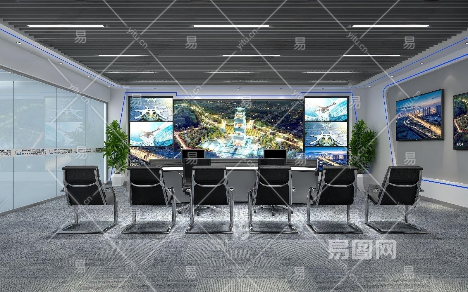现代简约风格监控室3D模型下载