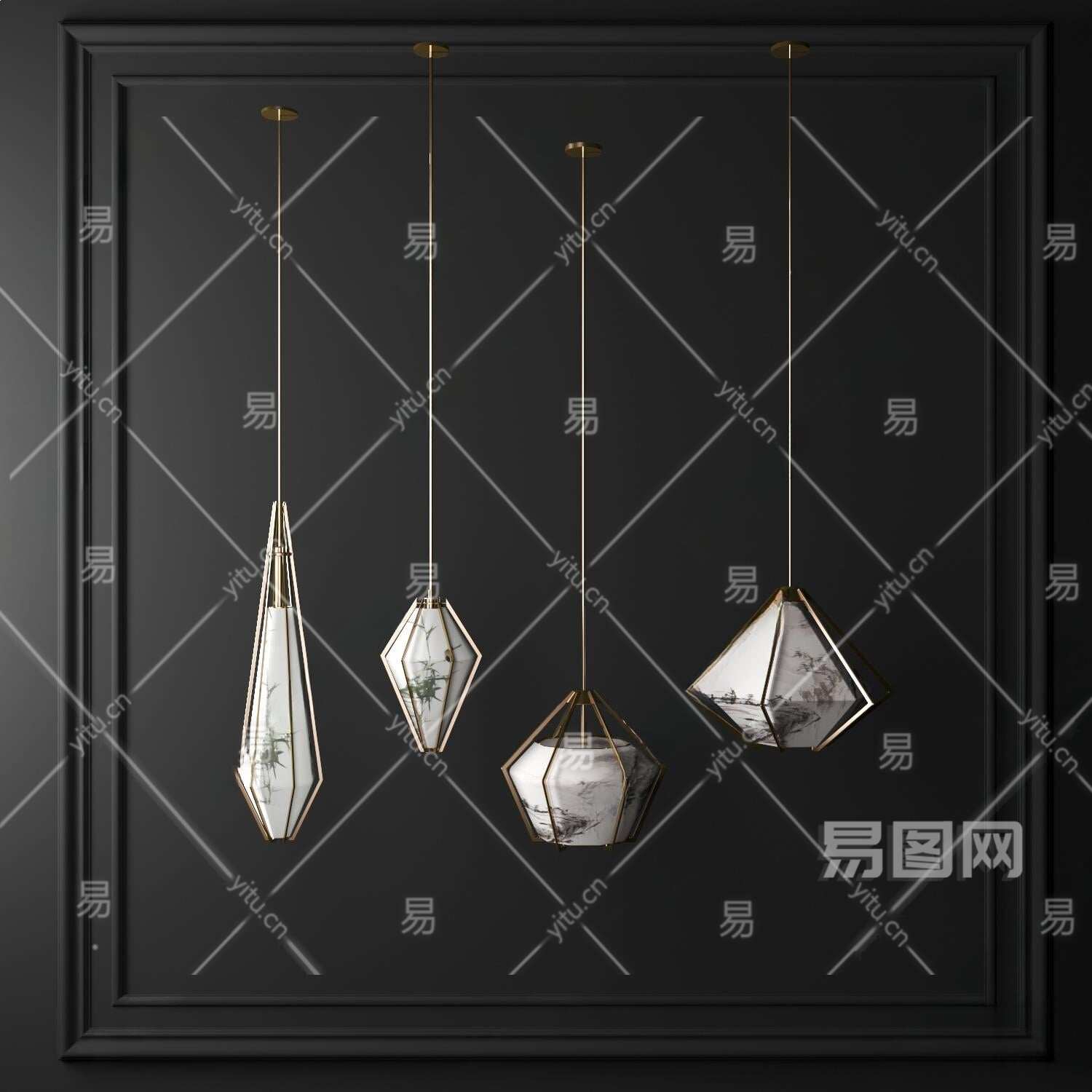 新中式吊灯3D模型下载