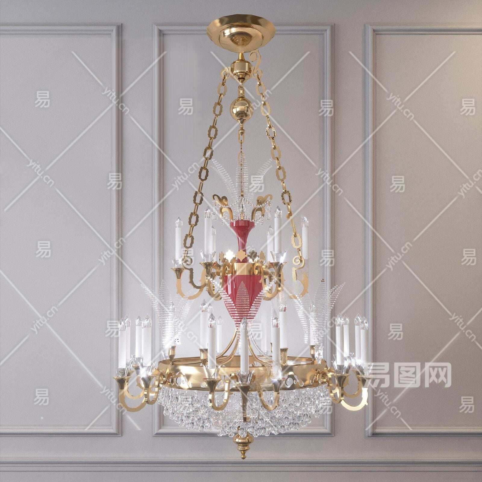简欧水晶吊灯3D模型下载