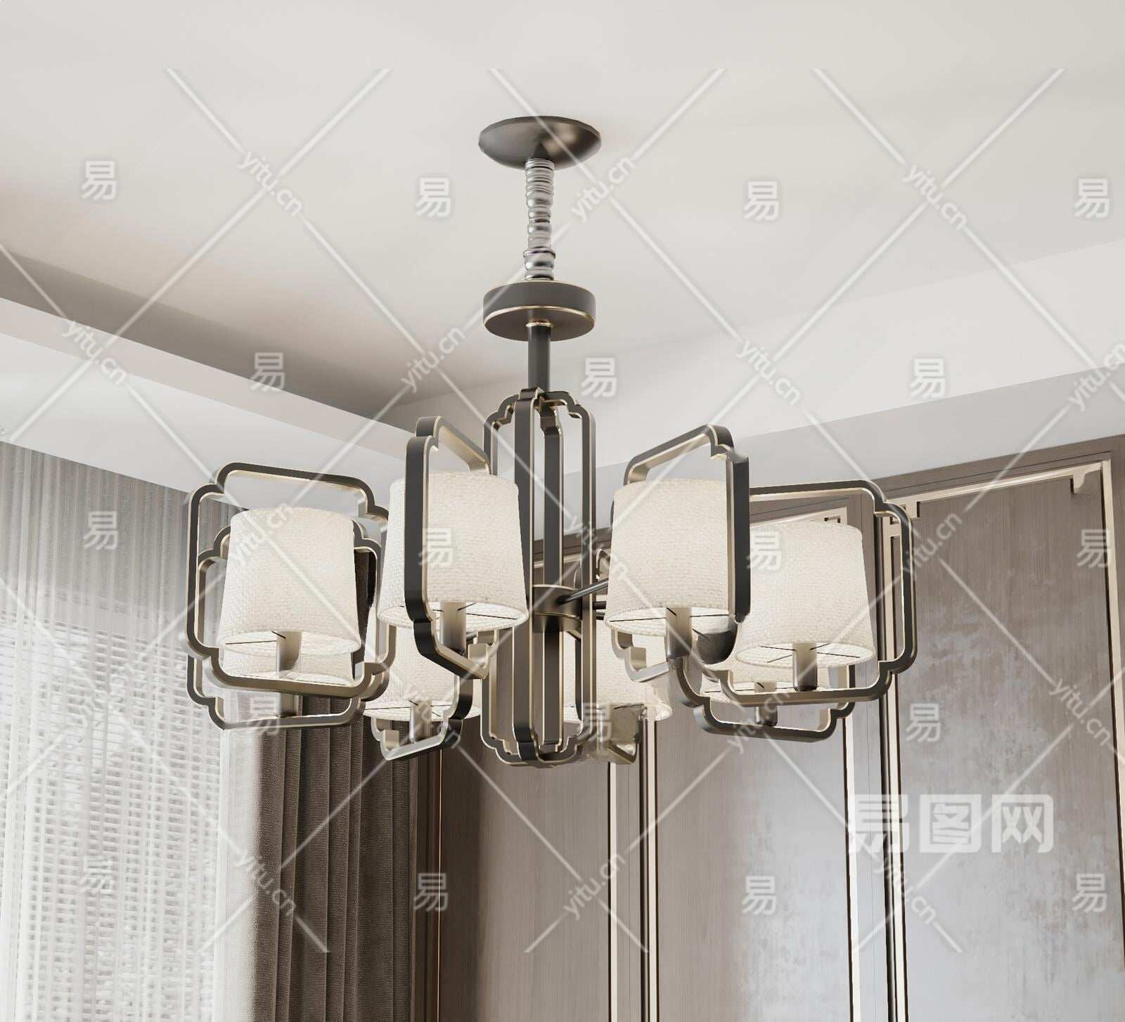 新中式金属吊灯3D模型下载