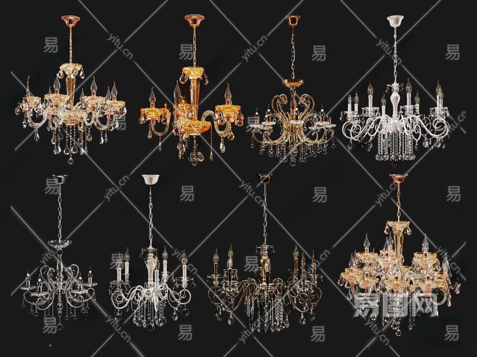 欧式古典水晶灯3D模型下载