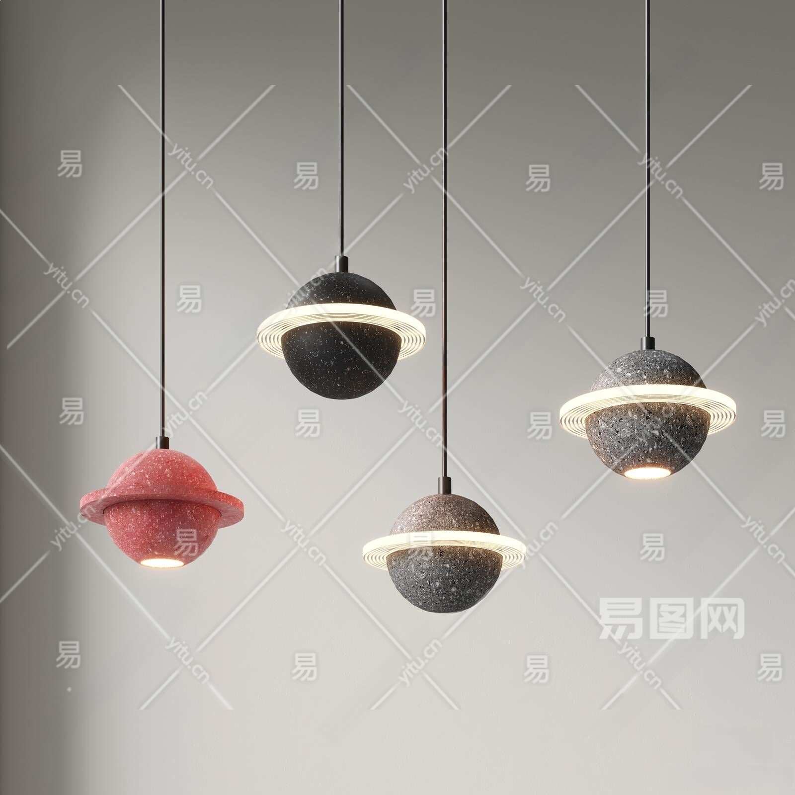 现代星球水泥吊灯3D模型下载