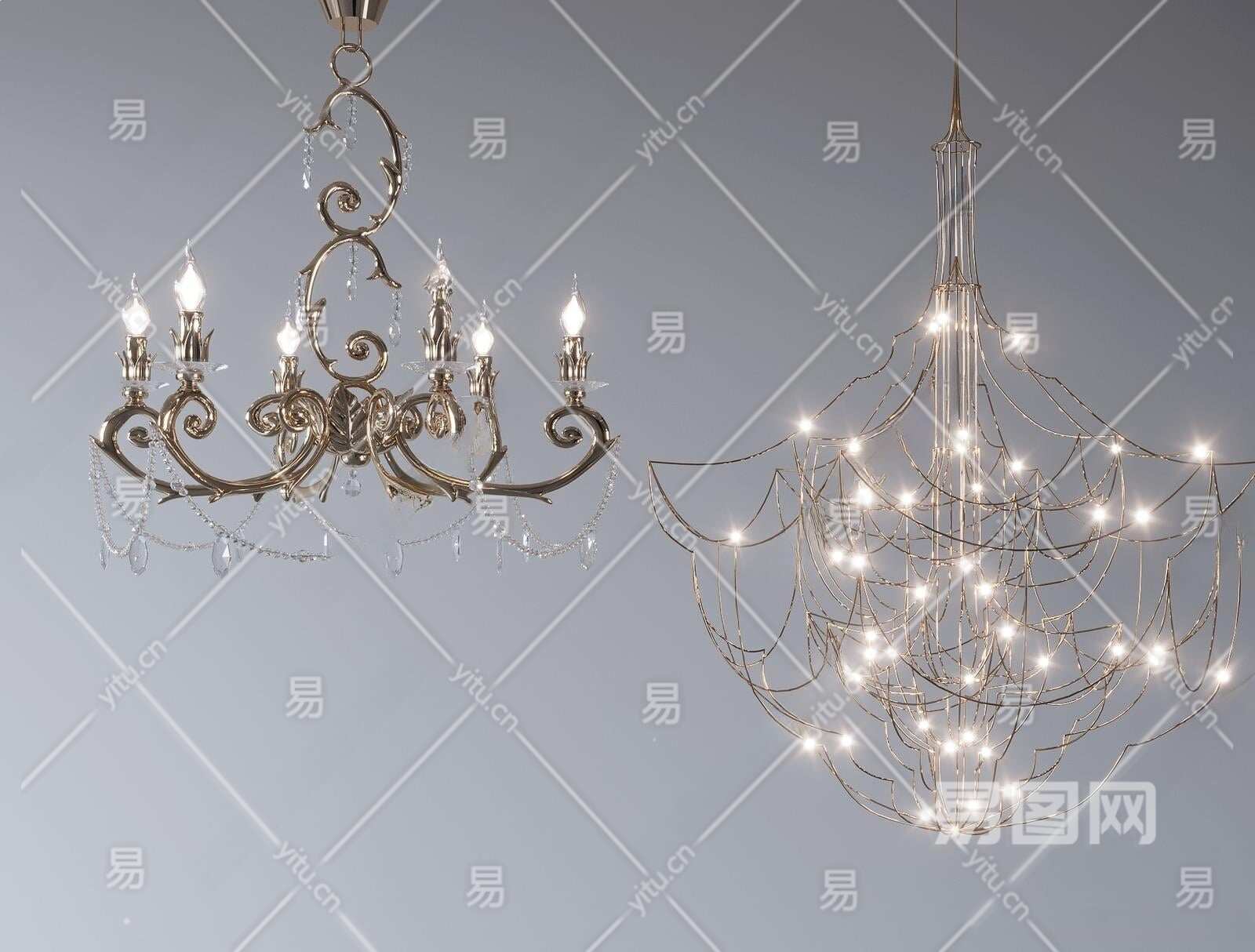 法式吊灯3D模型下载