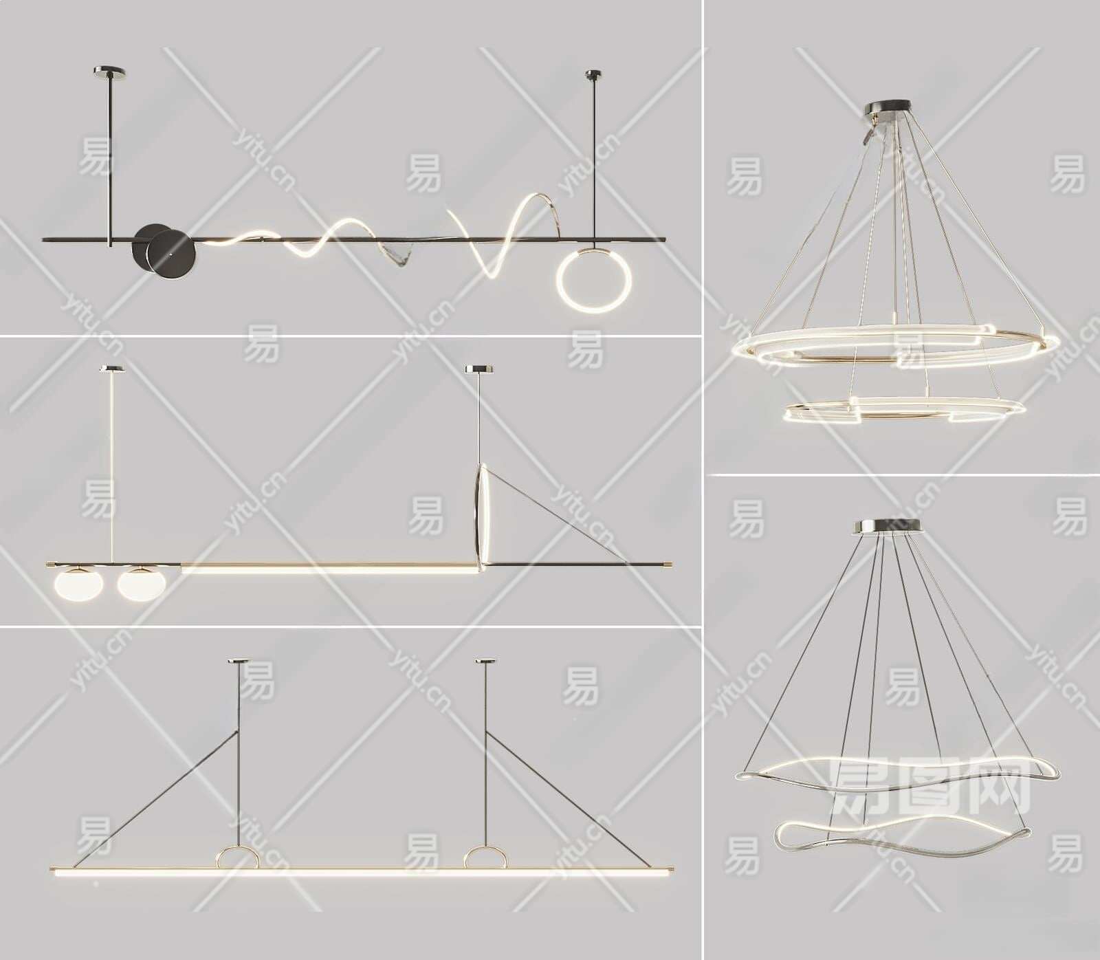 现代吊灯组合3D模型下载