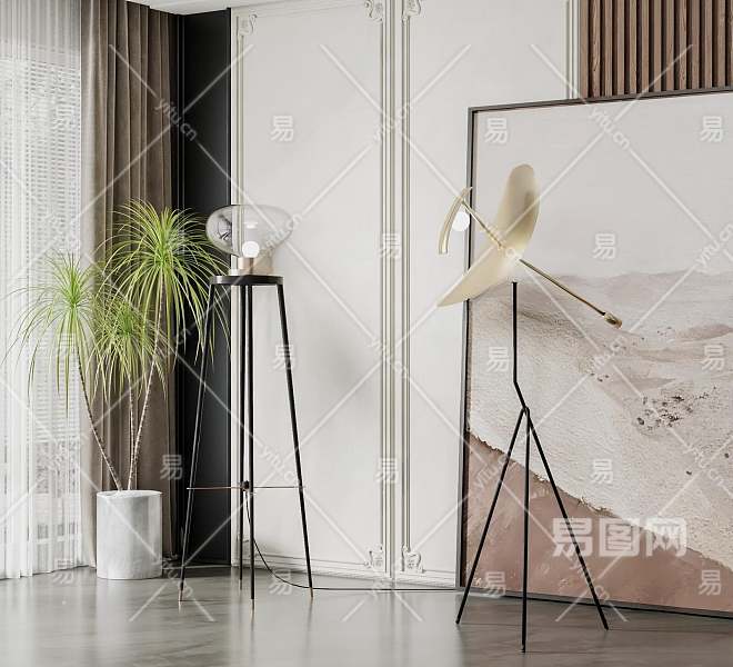 现代金属落地灯组合3D模型下载
