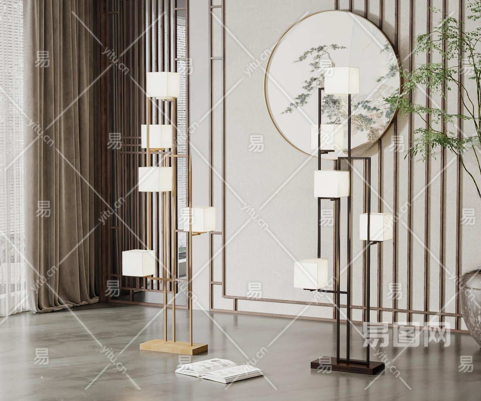 新中式落地灯3D模型下载
