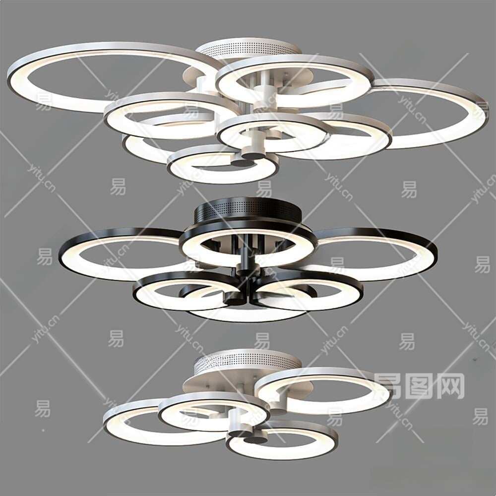 现代简约圆圈吸顶灯3D模型下载