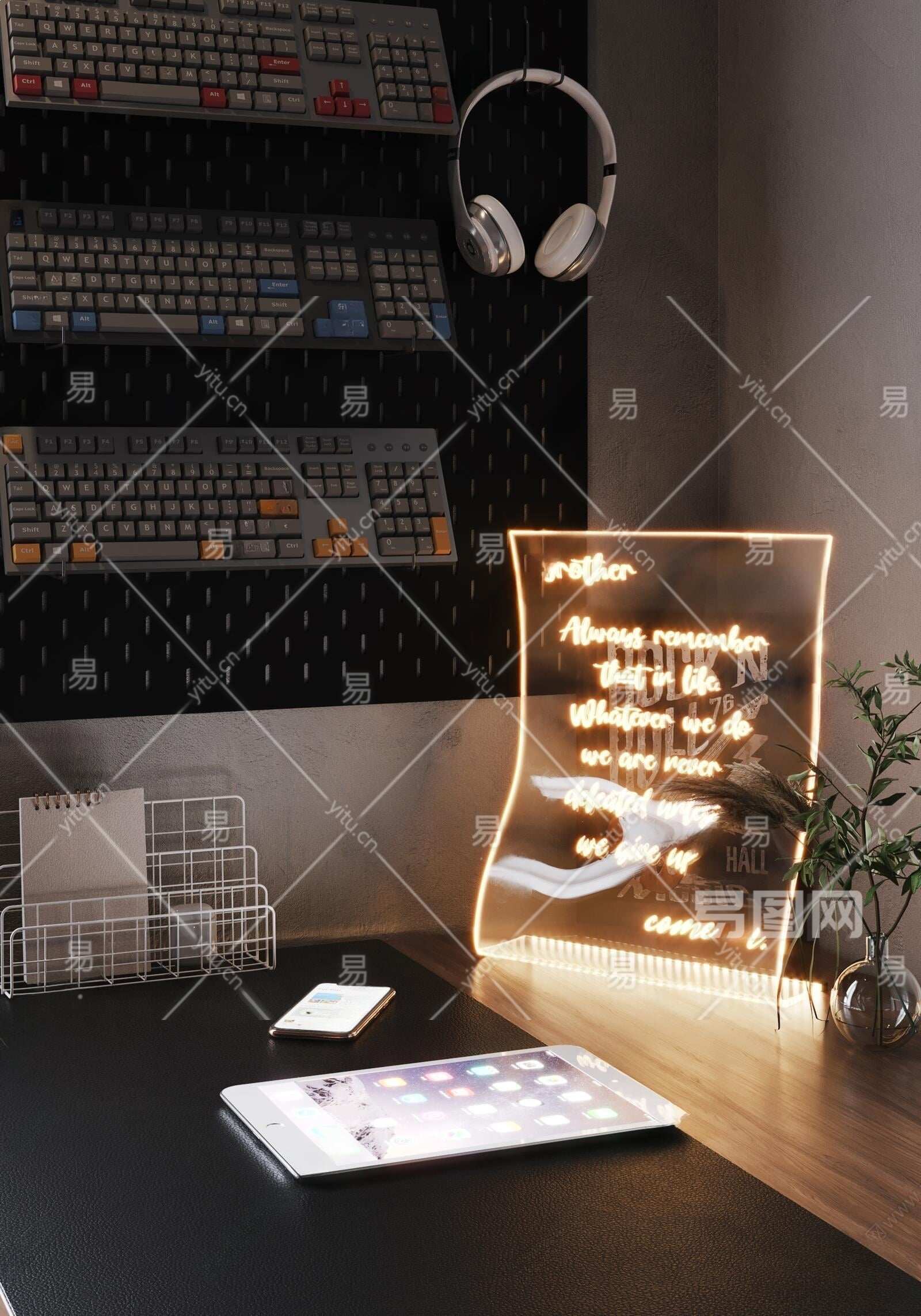 现代LED亚克力流光灯3D模型下载
