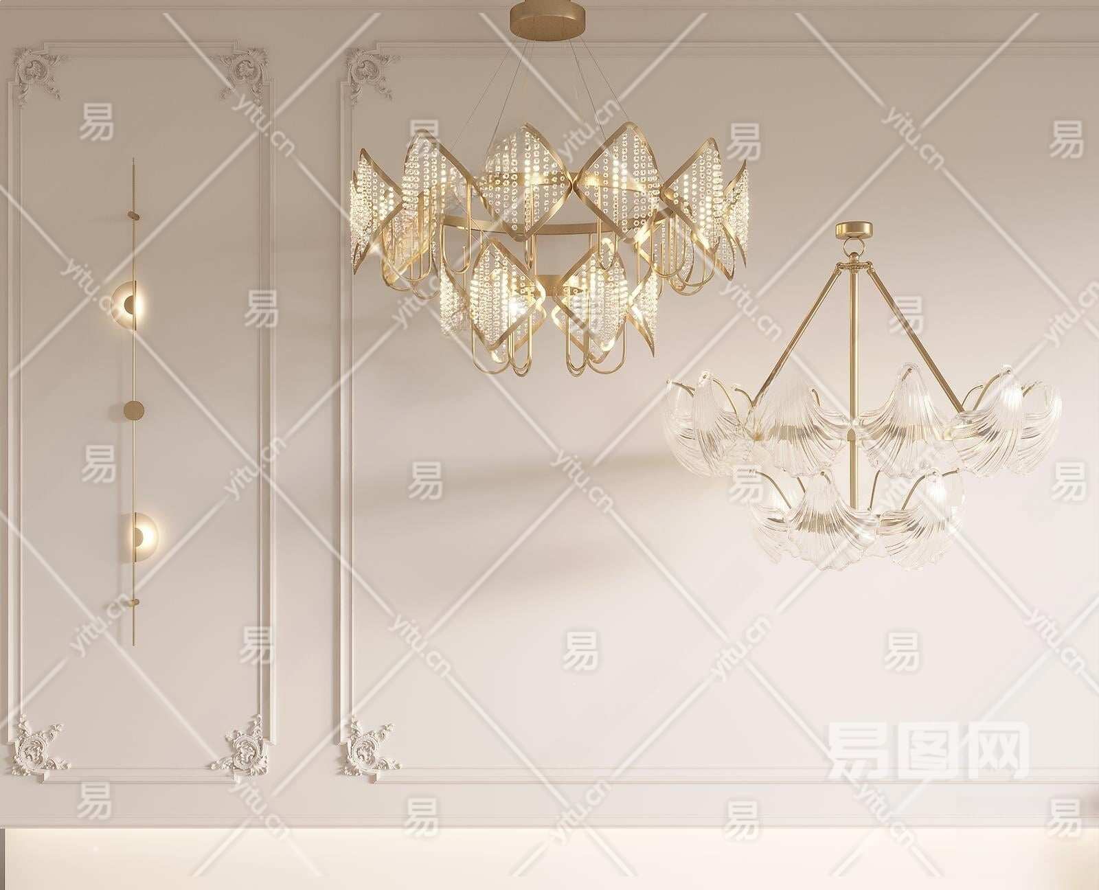 法式灯具组合3D模型下载