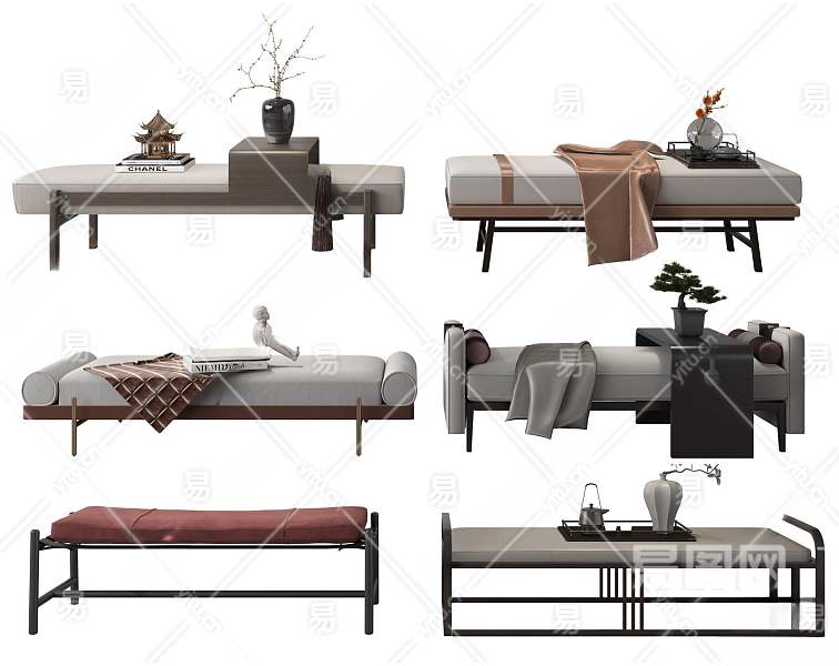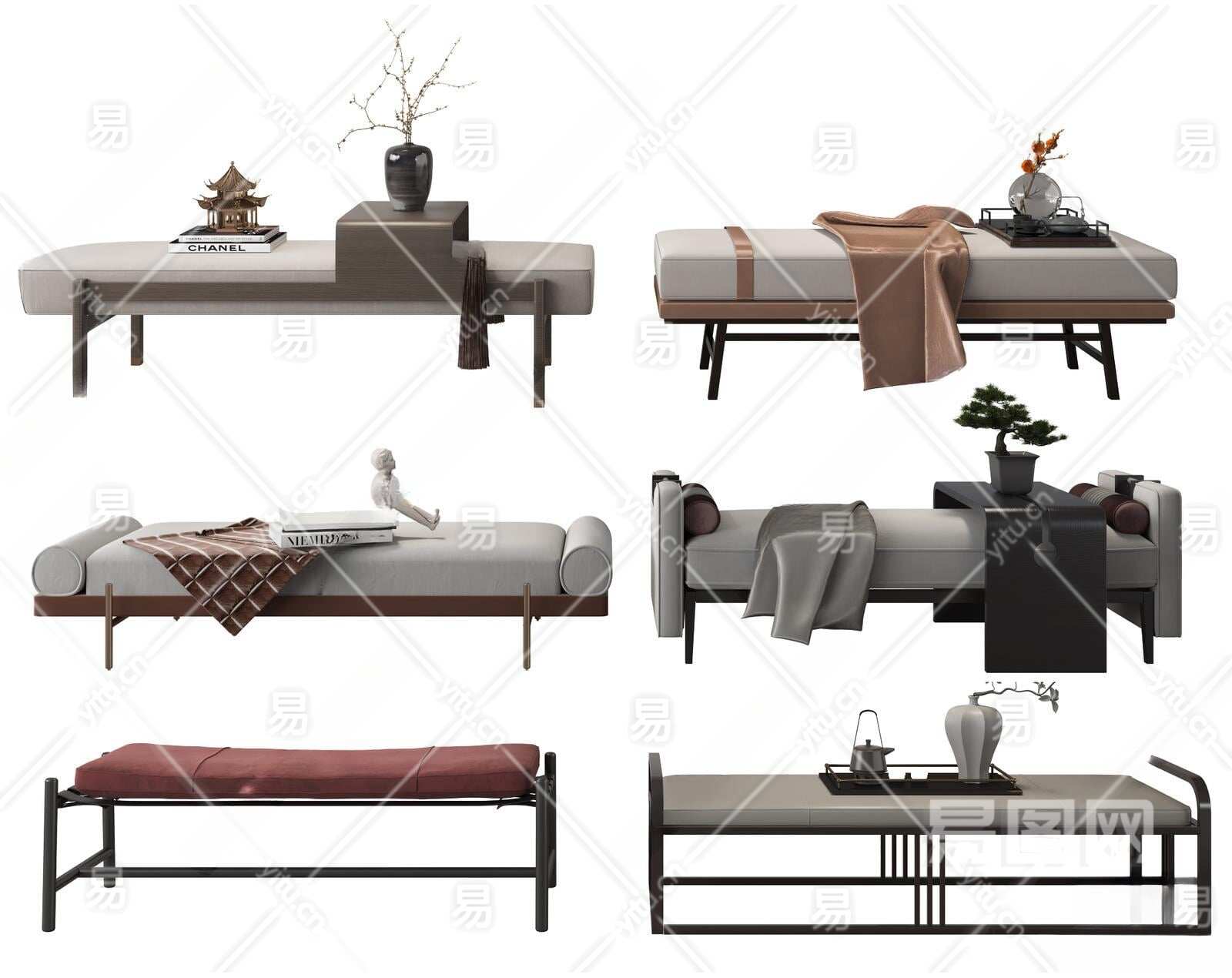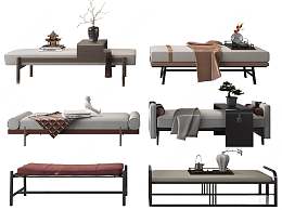 新中式布艺床尾凳3D模型下载