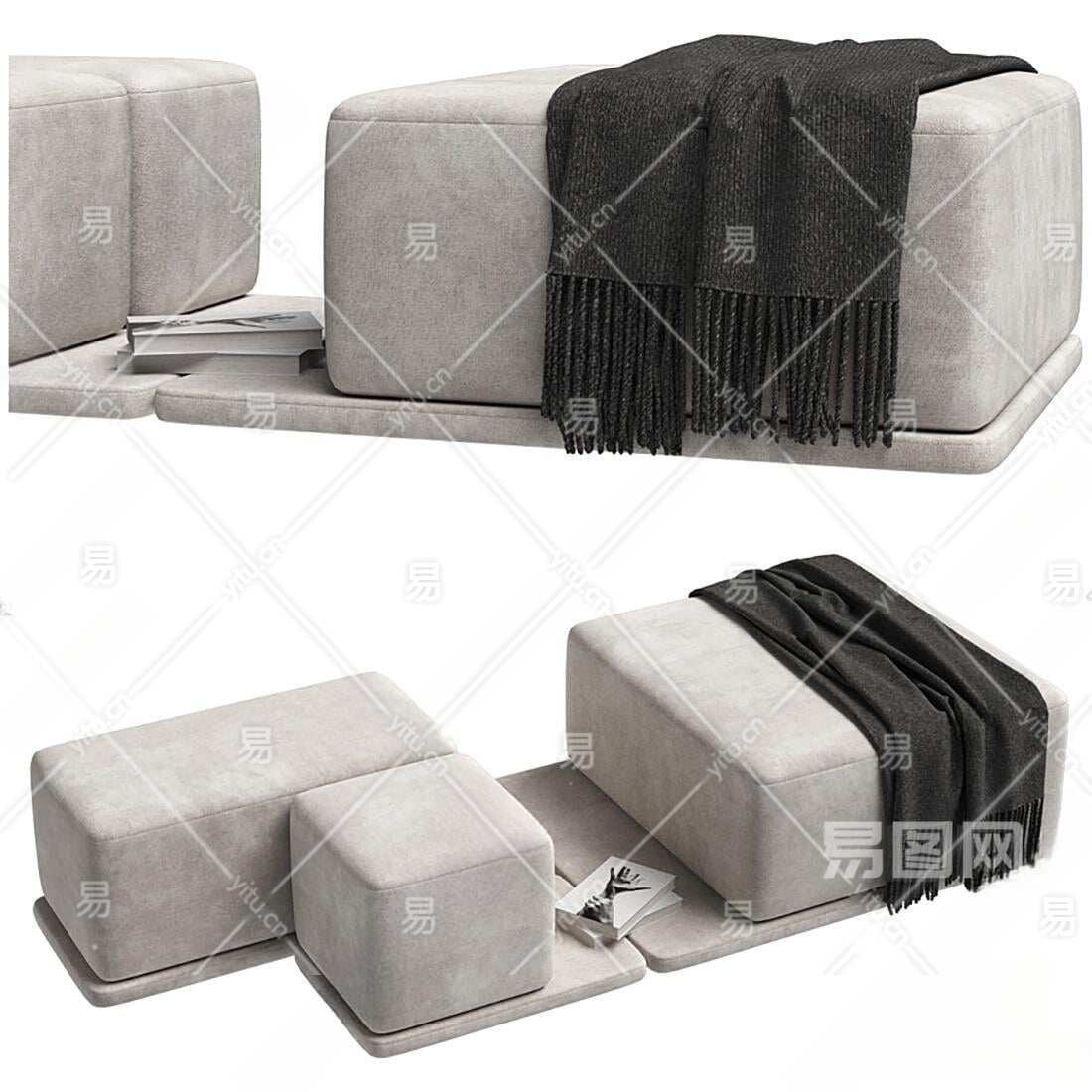 现代布艺拼合床尾凳3D模型下载