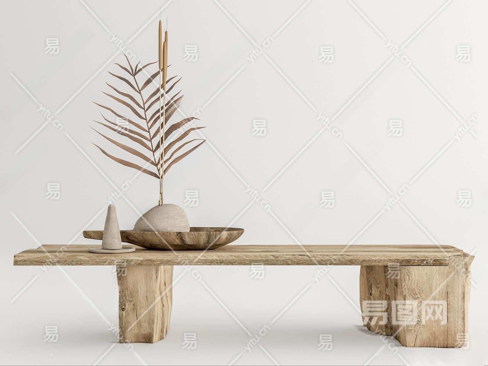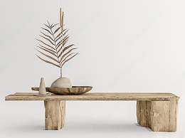 侘寂原木长凳3D模型下载