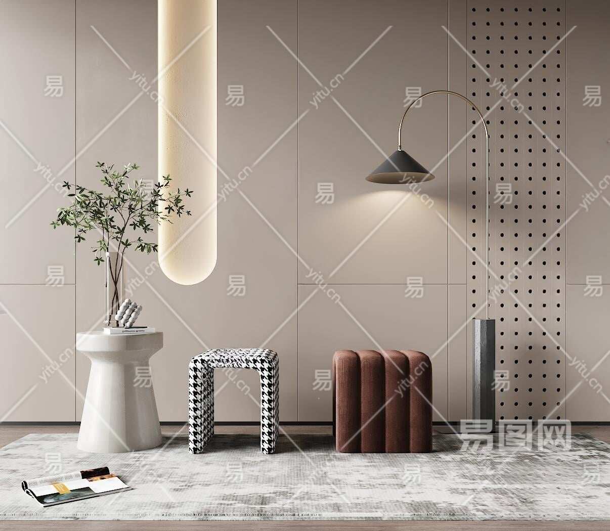 现代换鞋凳3D模型下载