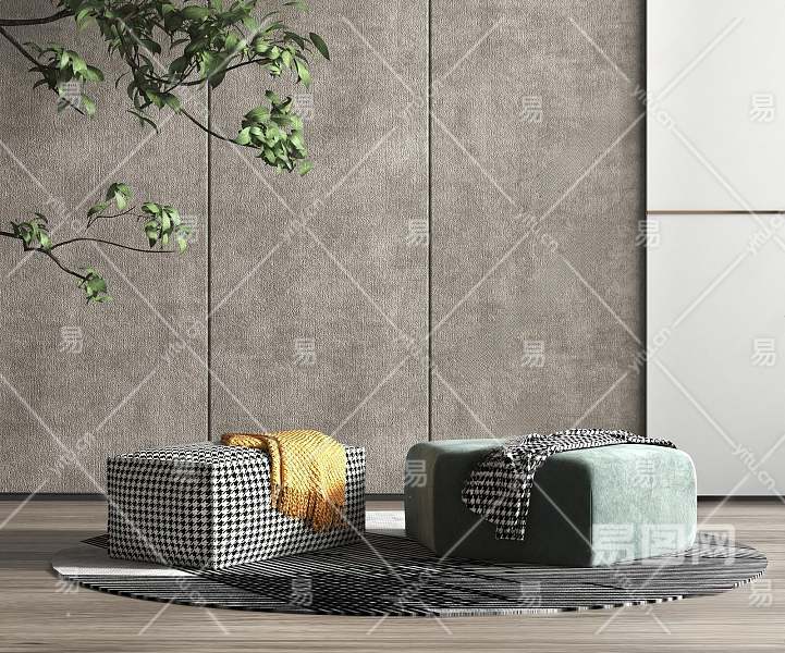 现代沙发凳3D模型下载