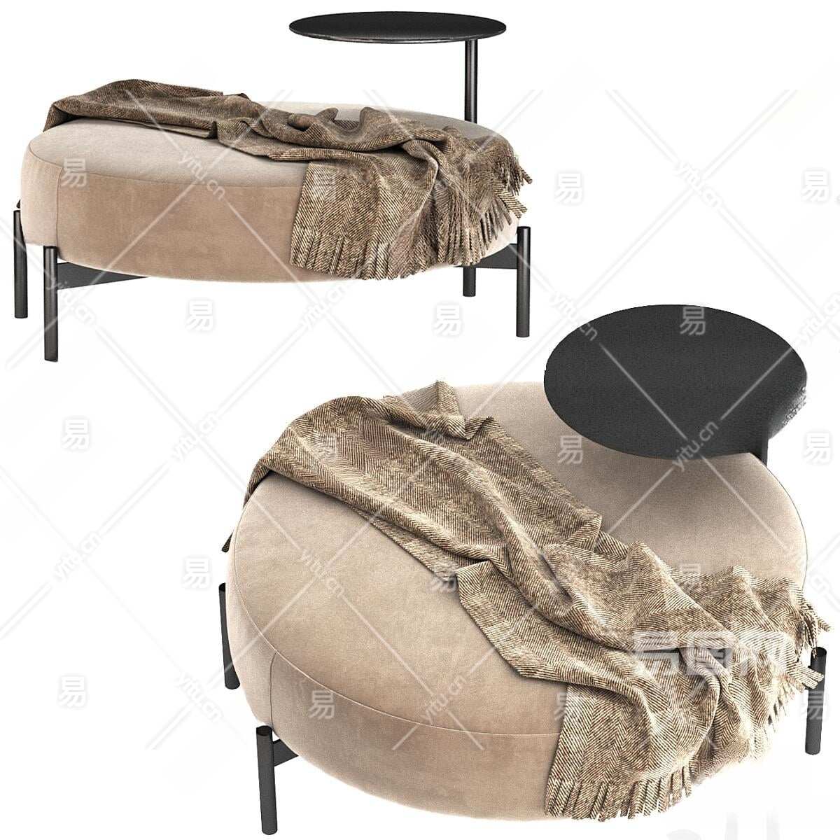 现代沙发凳3D模型下载