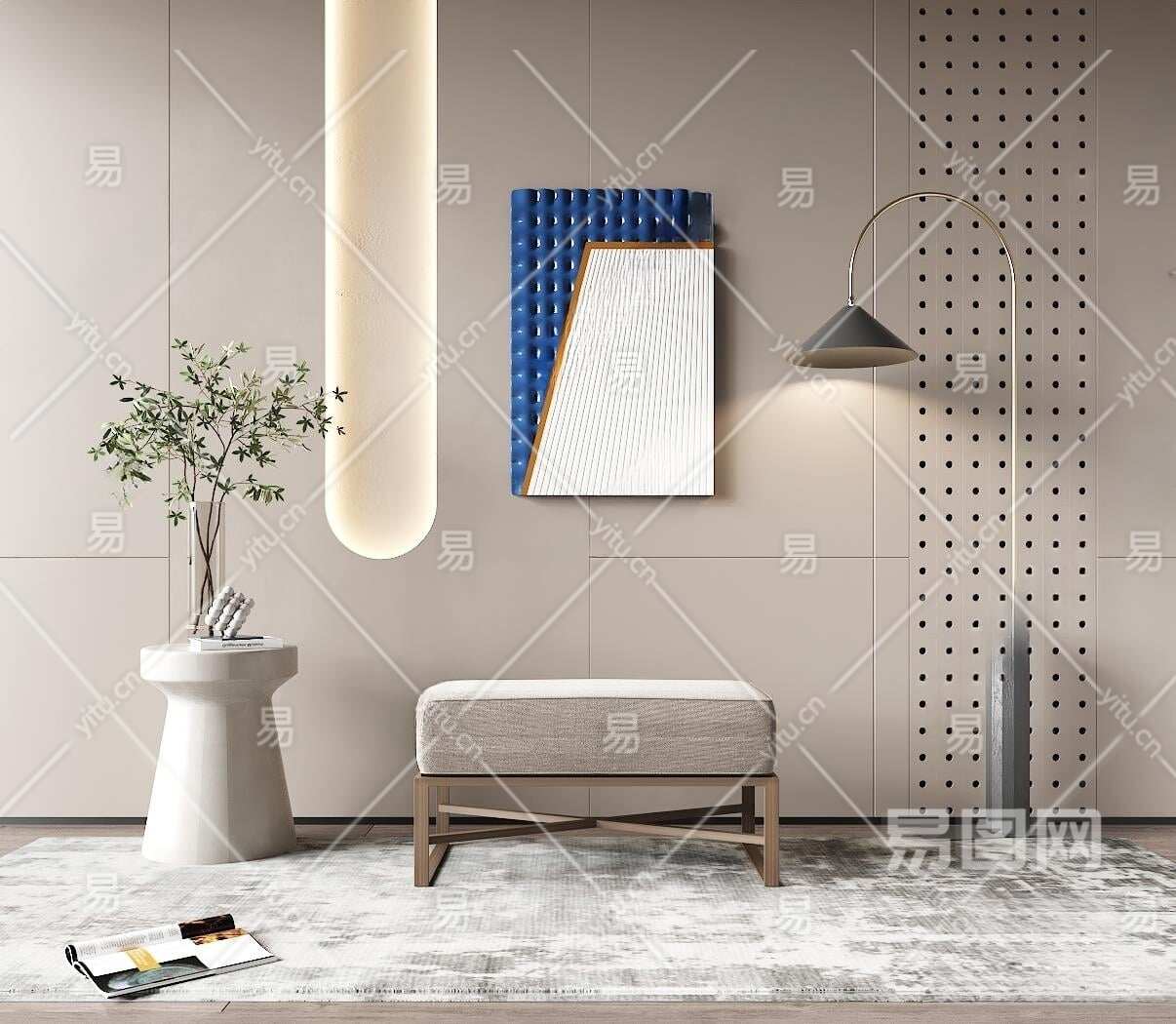 现代沙发凳3D模型下载