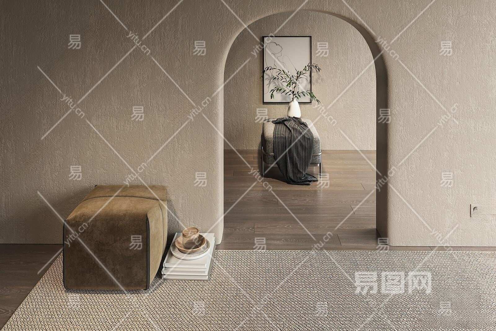现代沙发凳3D模型下载