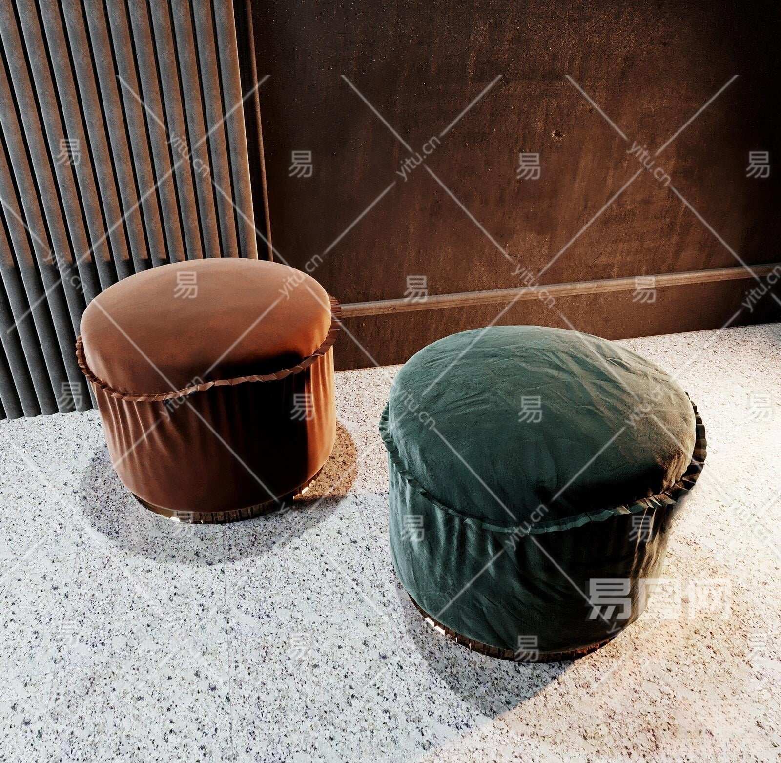 现代单人矮凳3D模型下载