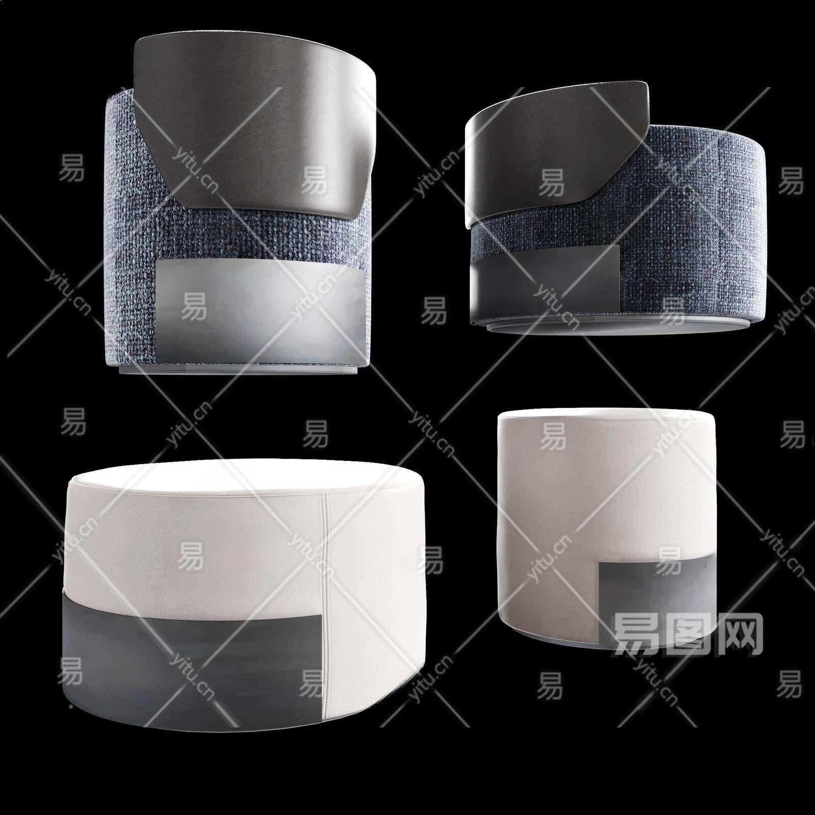 现代沙发凳3D模型下载