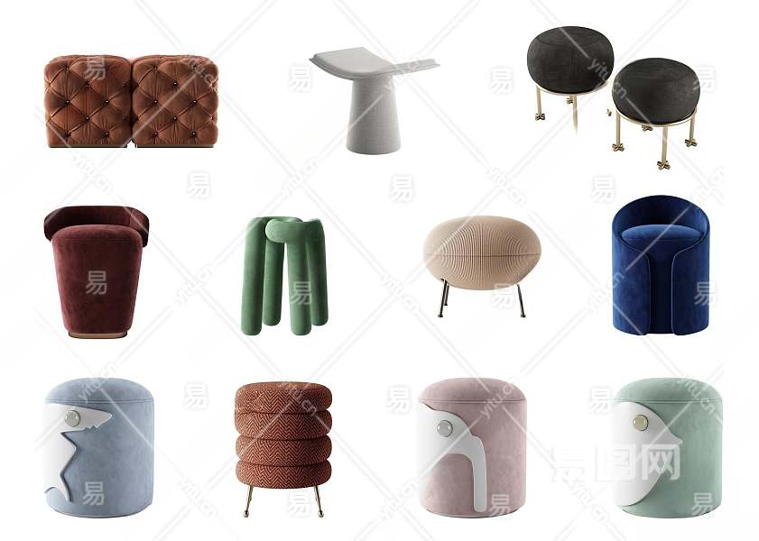现代沙发凳3D模型下载