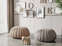 现代沙发凳组合3D模型下载