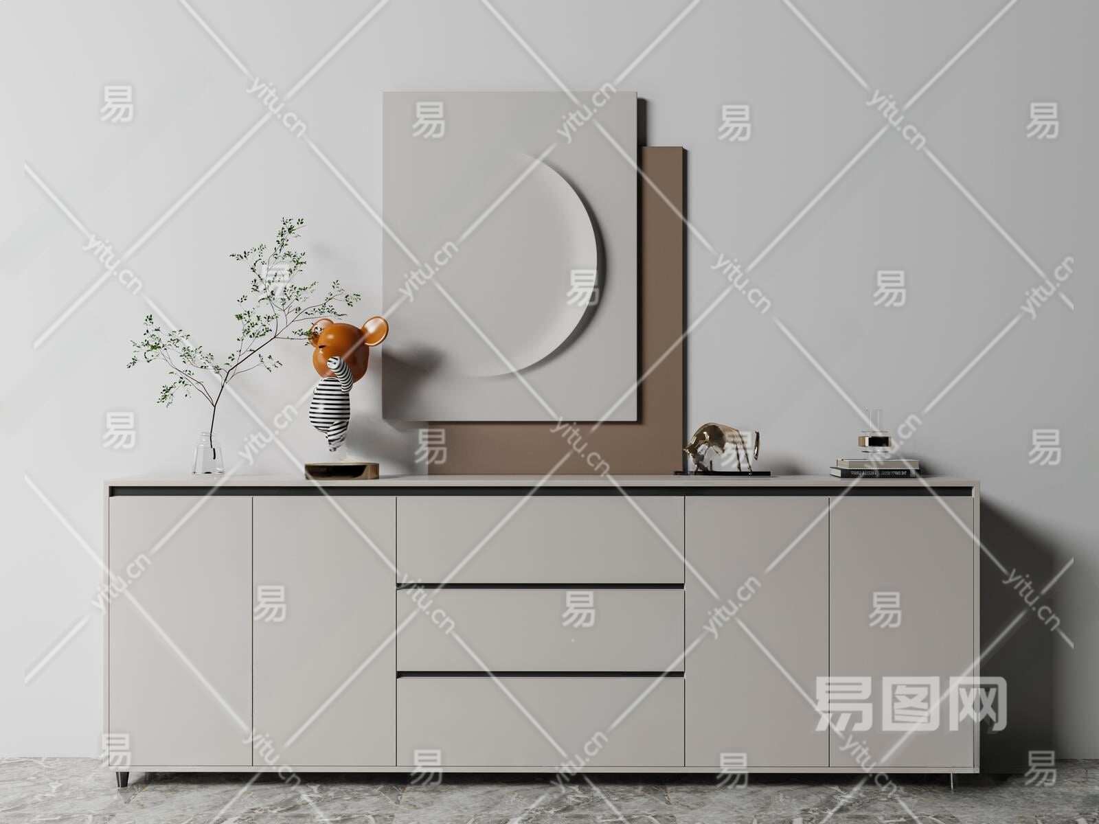 现代玄关柜3D模型下载