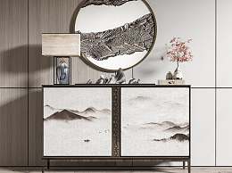 新中式玄关柜3D模型下载