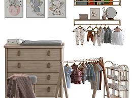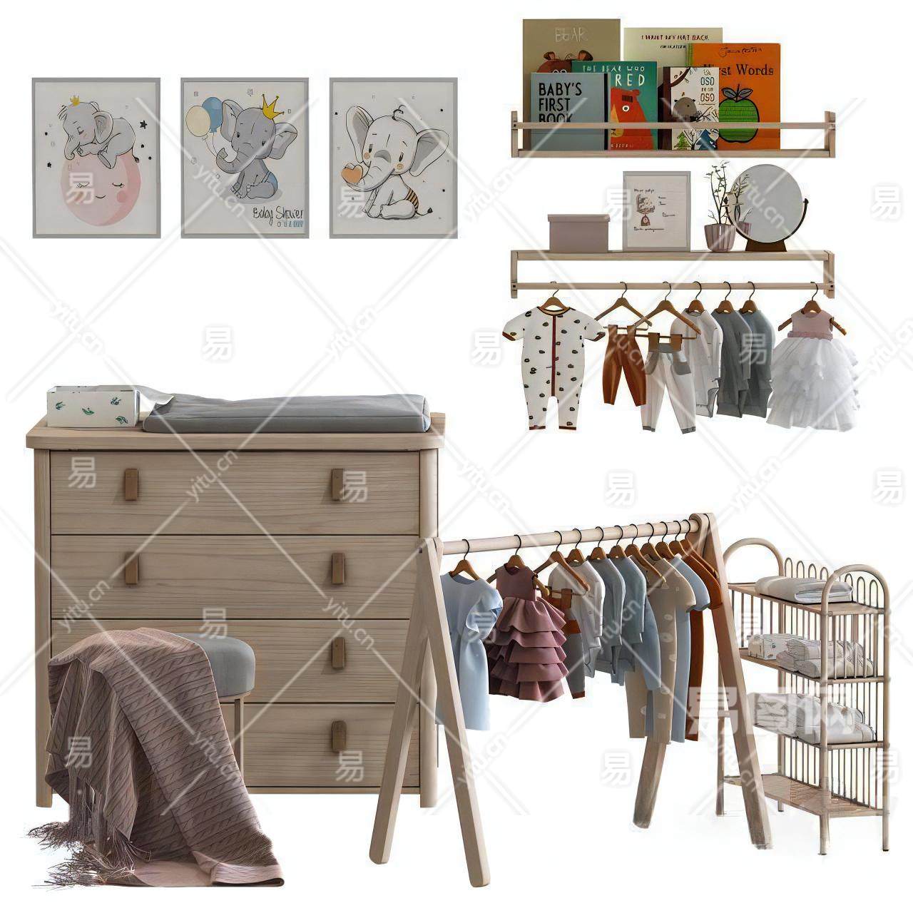 现代收纳柜 储物柜 儿童装 装饰品 挂画 凳子 脚踏