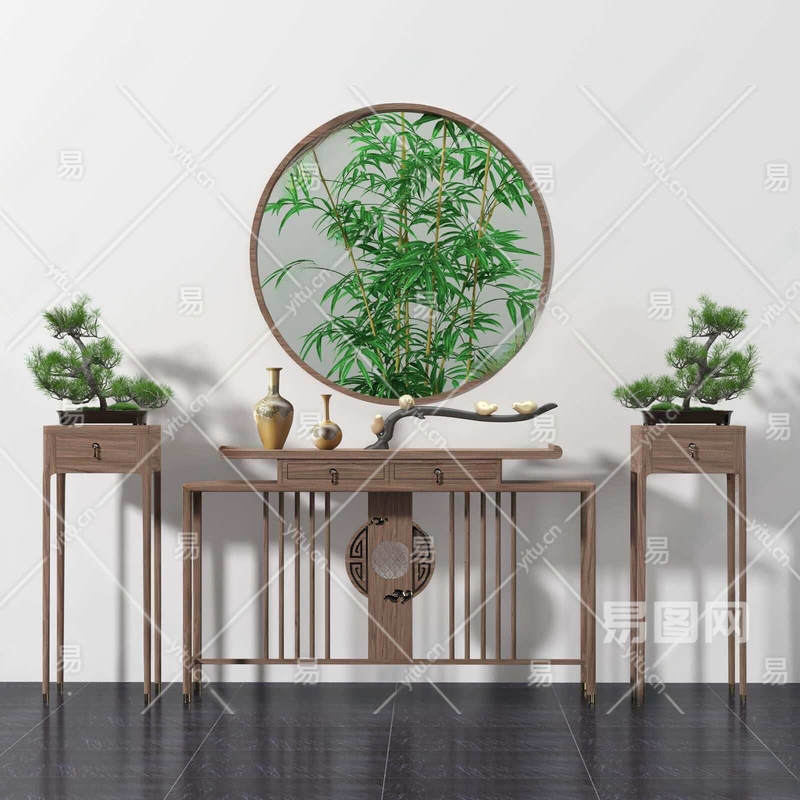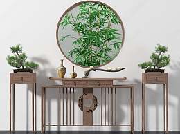 新中式端景条案3D模型下载