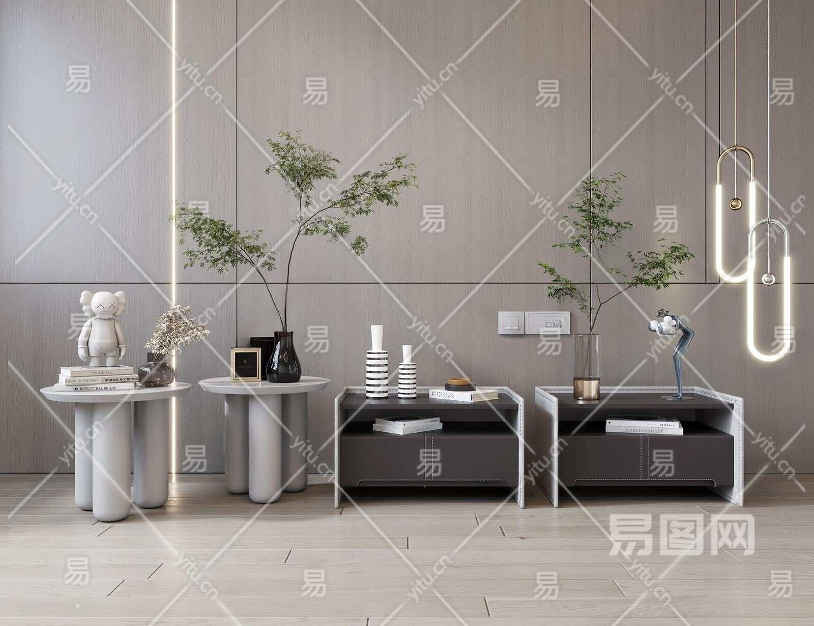 现代床头柜组合3D模型下载