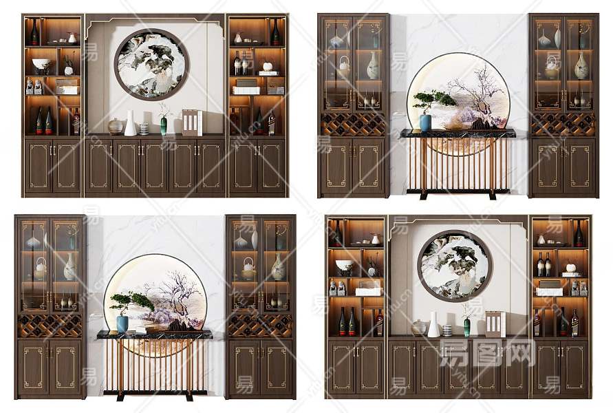 新中式酒柜3D模型下载