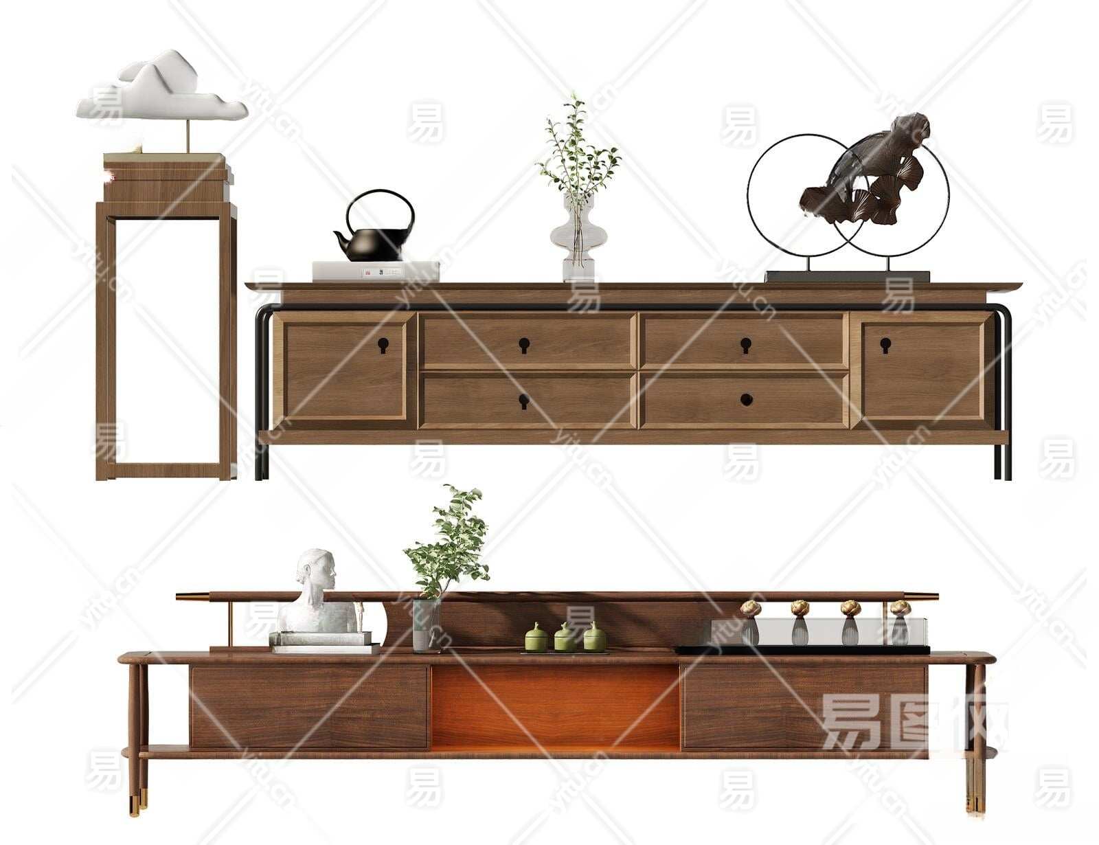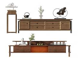 新中式电视柜3D模型下载