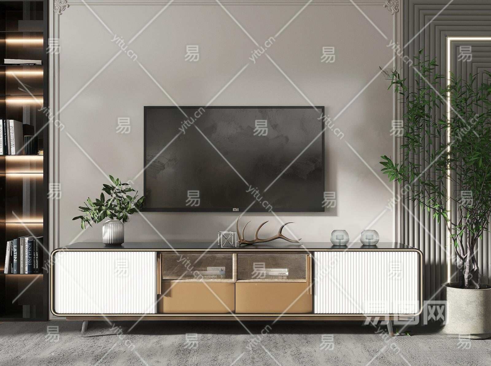 现代电视柜3D模型下载