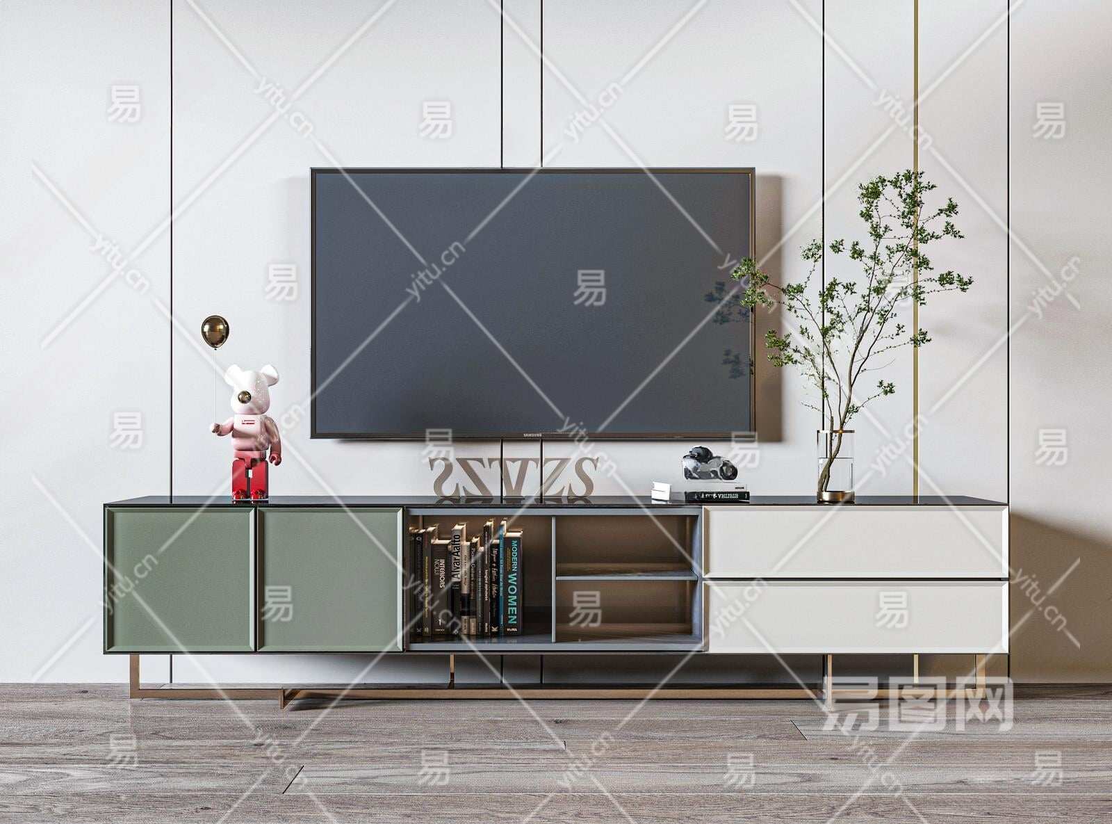 现代电视柜3D模型下载